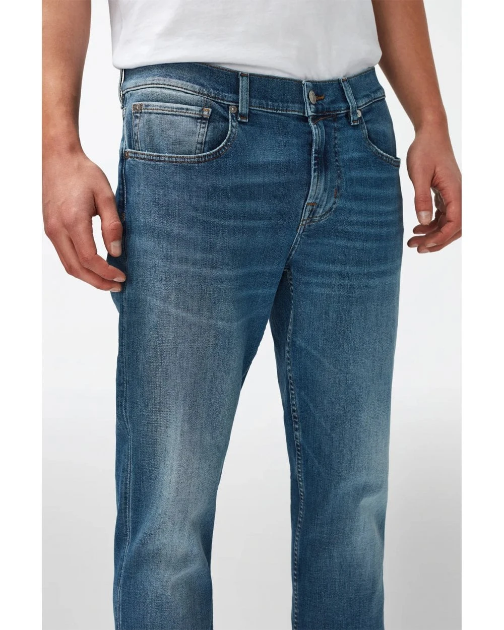 - 7 For All Mankind Mens Slimmy Tapered Stretch Tek Intuitive Jeans, Mid Blue Denim