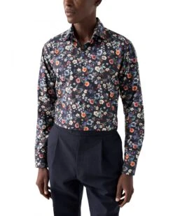 - Eton Mens Pineapple Cotton Print Shirt Orange
